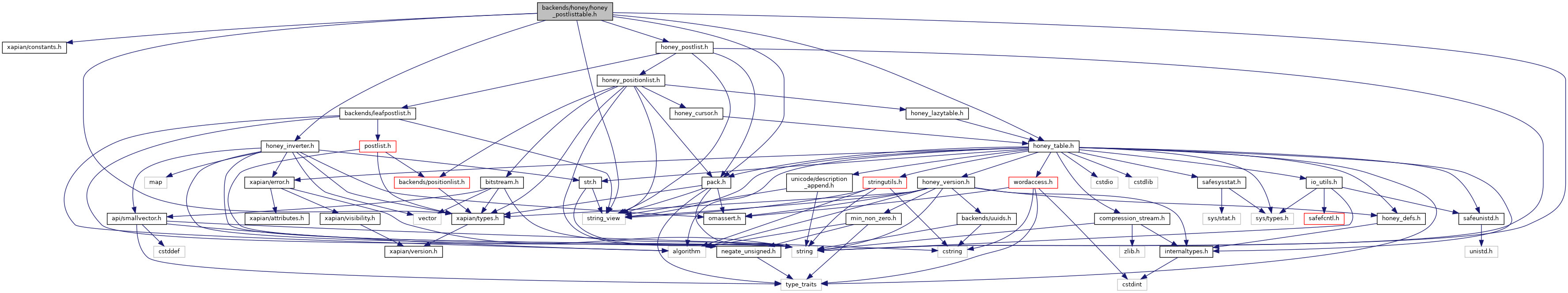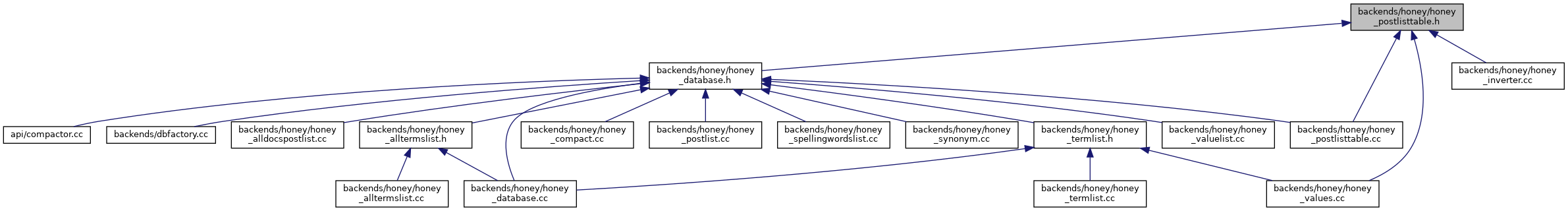 Include dependency graph for honey_postlisttable.h:
