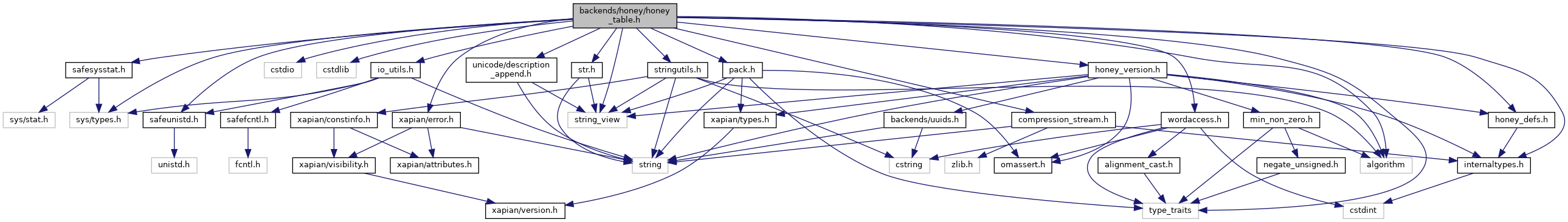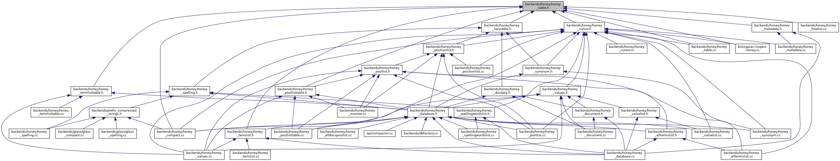 Include dependency graph for honey_table.h: