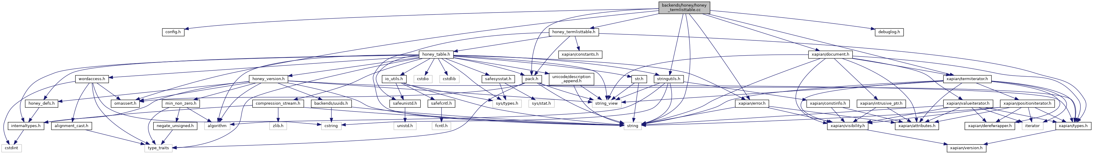Include dependency graph for honey_termlisttable.cc:Go to the source code of this file.