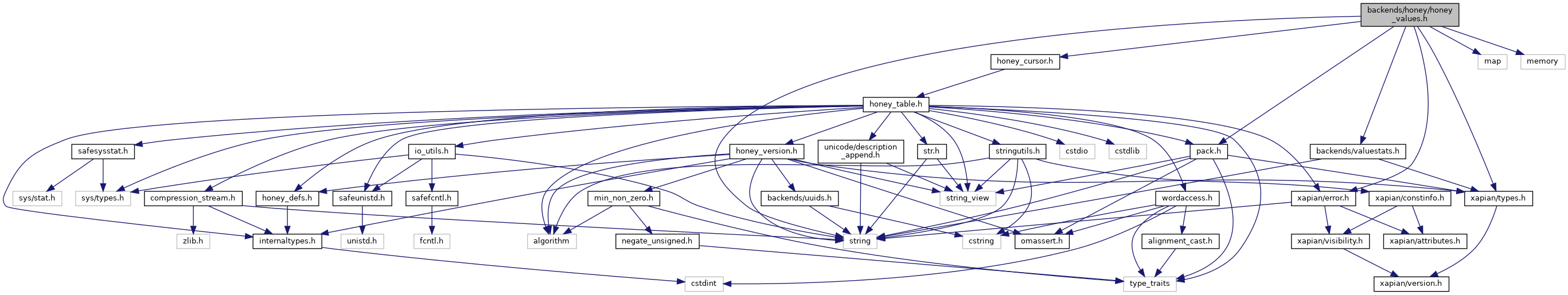 Include dependency graph for honey_values.h:
