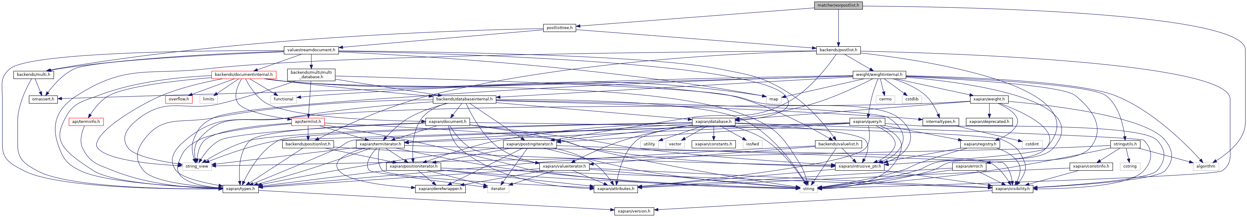 Include dependency graph for xorpostlist.h: